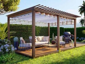 We use high-grade, weather-resistant materials like treated wood, stainless steel, natural stone, and composite decking.